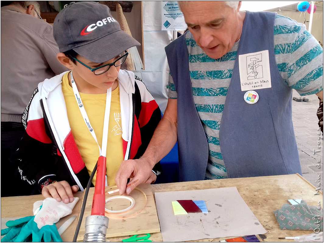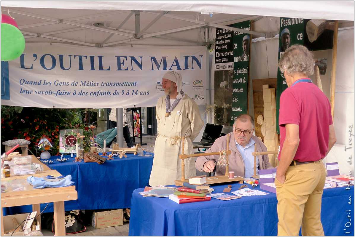 Sur le parvis de l’Hôtel de ville, un village des métiers d’art était installé, avec, parmi les nombreux artisans présent, la participation de l’Outil en Main de Troyes, qui a reçu de nombreux visiteurs pour des démonstrations de savoir-faire et des ateliers destinés aux enfants : reliure, vitrail, sculpture sur bois,...