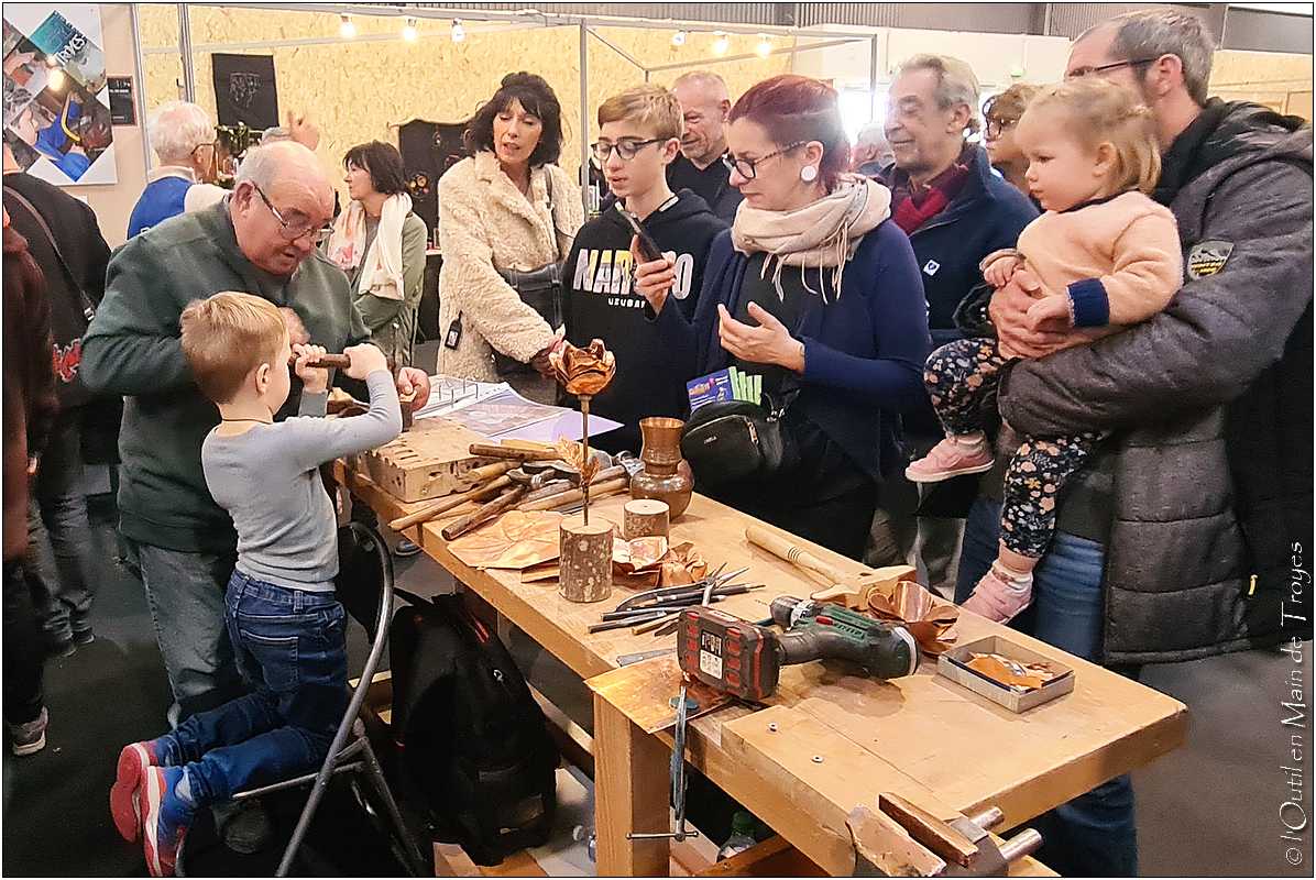 Parmi les artistes présents sur le salon, Hubert Chazelle, sculpteur sur bois et animateur de l’atelier sculpture sur bois à l’Outil en Main de Troyes, y présentait quelques unes de ses œuvres. A cette occasion, Hubert Chazelle s’est vu décerner le label Maître Artisan d’Art par la Chambre des Métiers.