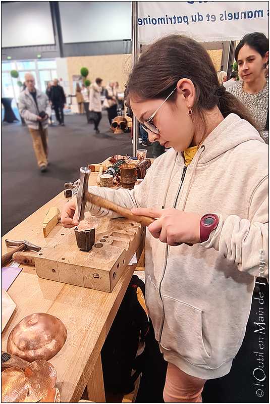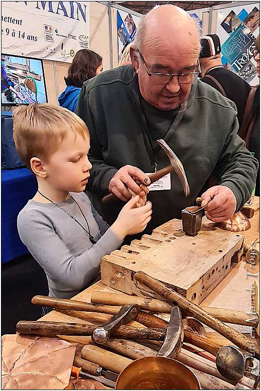 Les bénévoles et animateurs des ateliers ont présenté nos activités en lien avec le métal, avec quelques réalisations de Pascal "l’Ami du métal". Les enfants ont ainsi pu s’exercer à la dinanderie.
