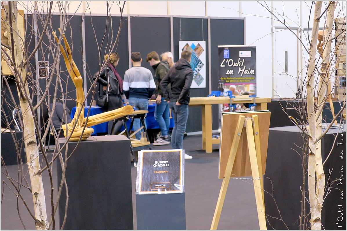 Parmi les artistes présents, Hubert Chazelle, sculpteur sur bois et animateur de l’atelier sculpture sur bois à l’Outil en Main de Troyes, y présentait quelques unes de ses œuvres Les Naturelles.