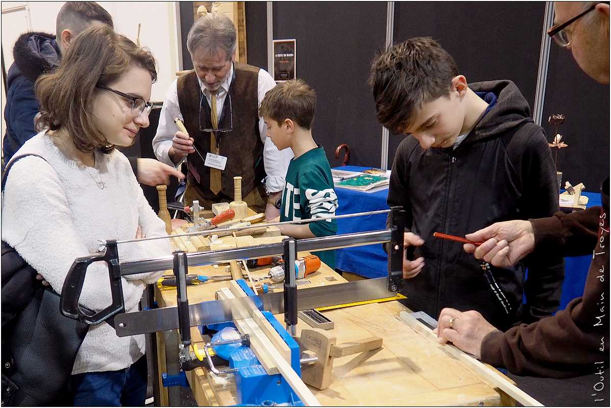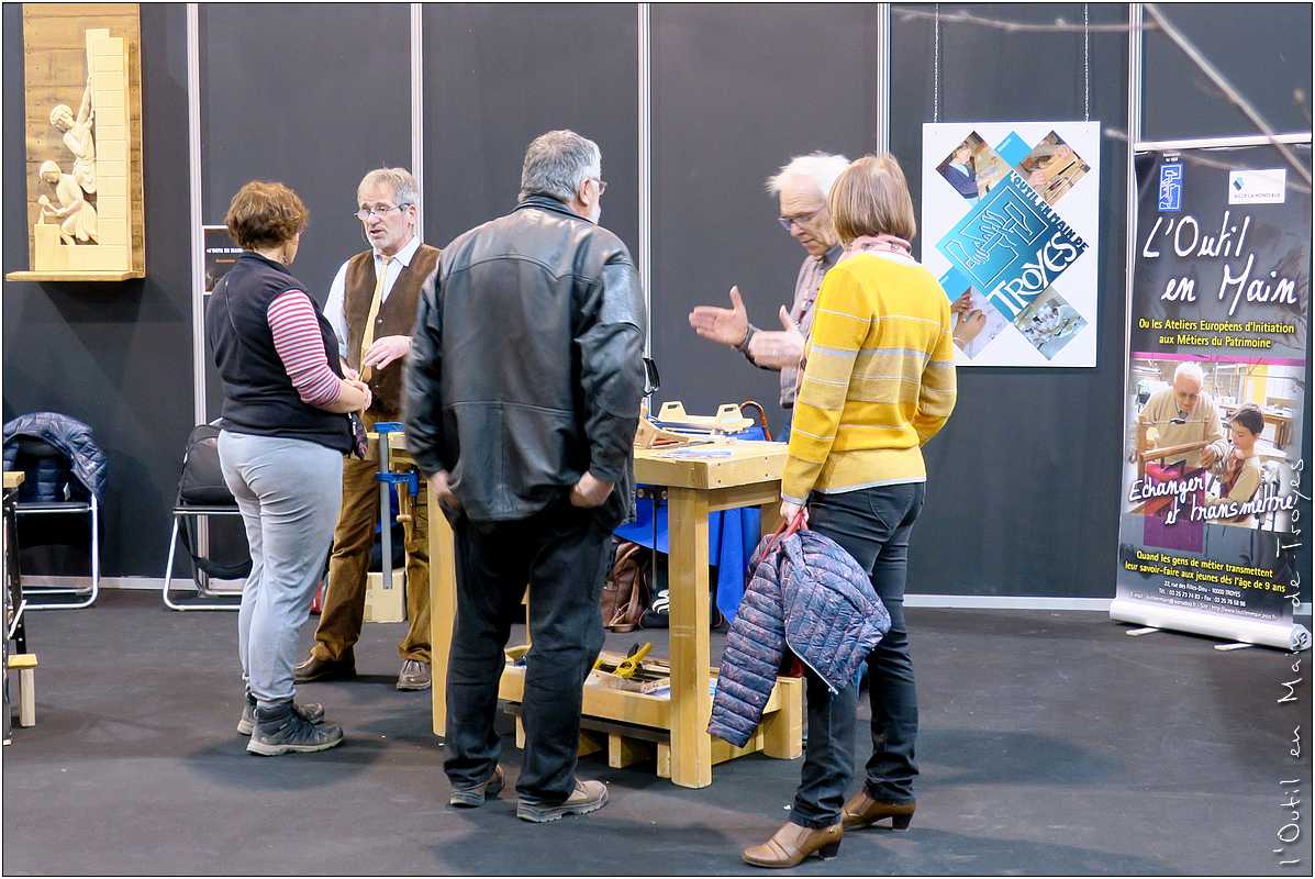 Sur 750m2, l’exposition « Au fil du bois » présentait quelques aspects des métiers du bois avec, outre les artistes présents qui exposaient leurs créations, la Maison de l’Outil et de la Pensée Ouvrière, le Lycée des Métiers des Arts de l’Habitat et de l’Ameublement P. et M. Curie de Neufchâteau ainsi que l’Outil en Main de Troyes.