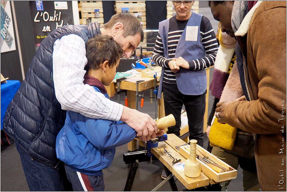 Les bénévoles et animateurs des ateliers présentaient nos activités en lien avec le bois : les enfants ont notamment pu s’exercer à la sculpture sur bois et à la menuiserie.