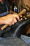 Je me rappelle les odeurs de cirage et de cuir, le bruit de la machine à polir. Je revois les petites boites contenant les pointes, souvent de vieilles boites à sardines ou de pilchards à la tomate. Pour clouer les semelles en cuir épais, le cordonnier utilisait diverses sortes de pointes : les "bombées", "les caboches", et sur le côté, "les ailes de mouche", sans oublier les pointes pour clouer les fers de devant ou de talon.