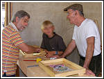 La peinture, nous dit Mr GUEULIN, c’est de la teinture, de l’huile de lin, de la térébenthine et du siccatif. Avec le siccatif, le séchage a lieu en 24 h au lieu de 3 semaines. La térébenthine et l’huile de lin aident à faire pénérer la peinture dans le bois. Mais, M’sieur, on met combien de couches ? Une seule suffira. Reste ensuite le plateau qui entre dans le cadre et qu’il faut peindre d’un seul trait et non pas par petits allers et retours. Maintenant j’ai compris le geste. Ah oui, bien écarter le manche.