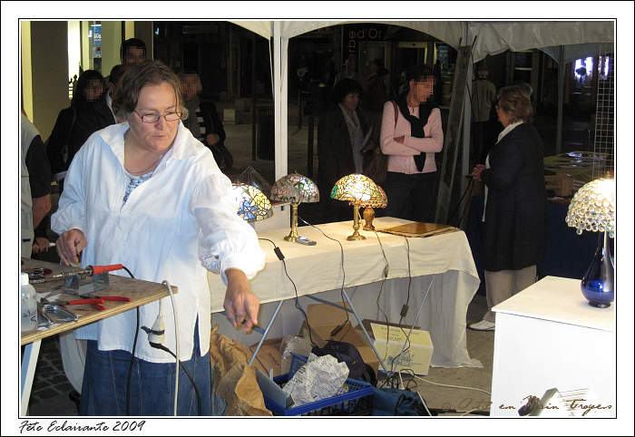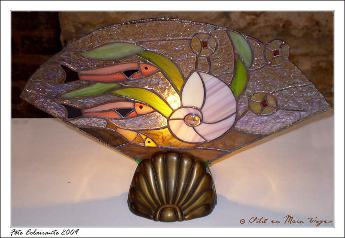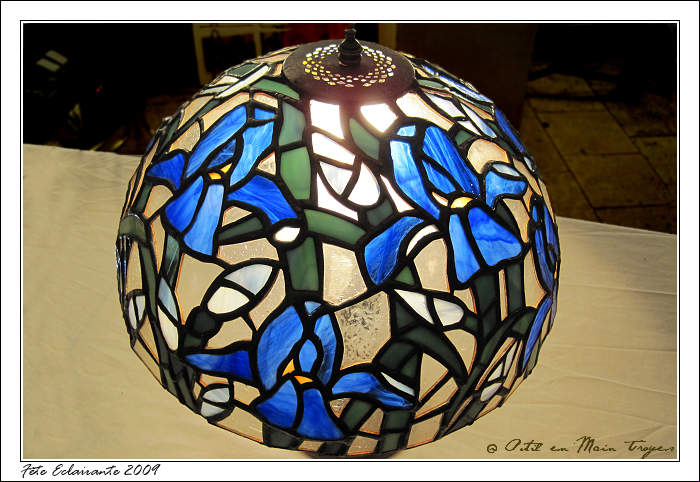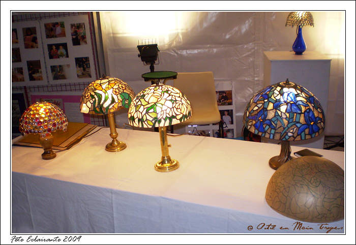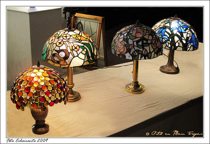 Dominique Robert, artiste verrier qui dirige la section "vitrail" de l’Outil en Main de Troyes, présentait quelques unes de ces œuvres et animait un atelier "vitrail Tiffany".