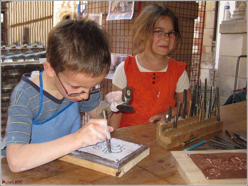 Pendant cette journée, les jeunes de l’Outil en Main de Troyes ont enchaîné les démonstrations. Les enfants de passage ont pour la plupart découvert les différents métiers proposés par nos animateurs et s’y sont exercé. Ils ont ainsi rencontré le calligraphe, le dinandier, le maçon, le menuisier, le peintre/staffeur, le plombier, le relieur, le sculpteur sur pierre, et la vitrailliste.