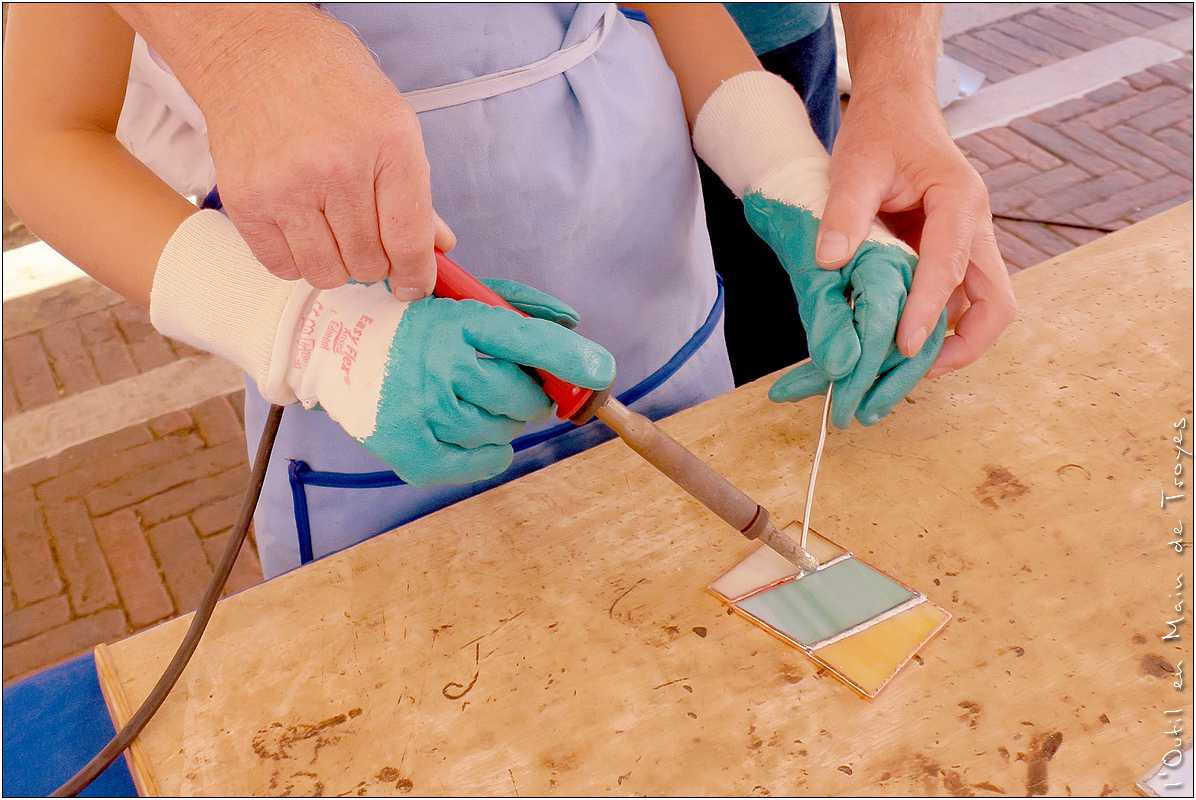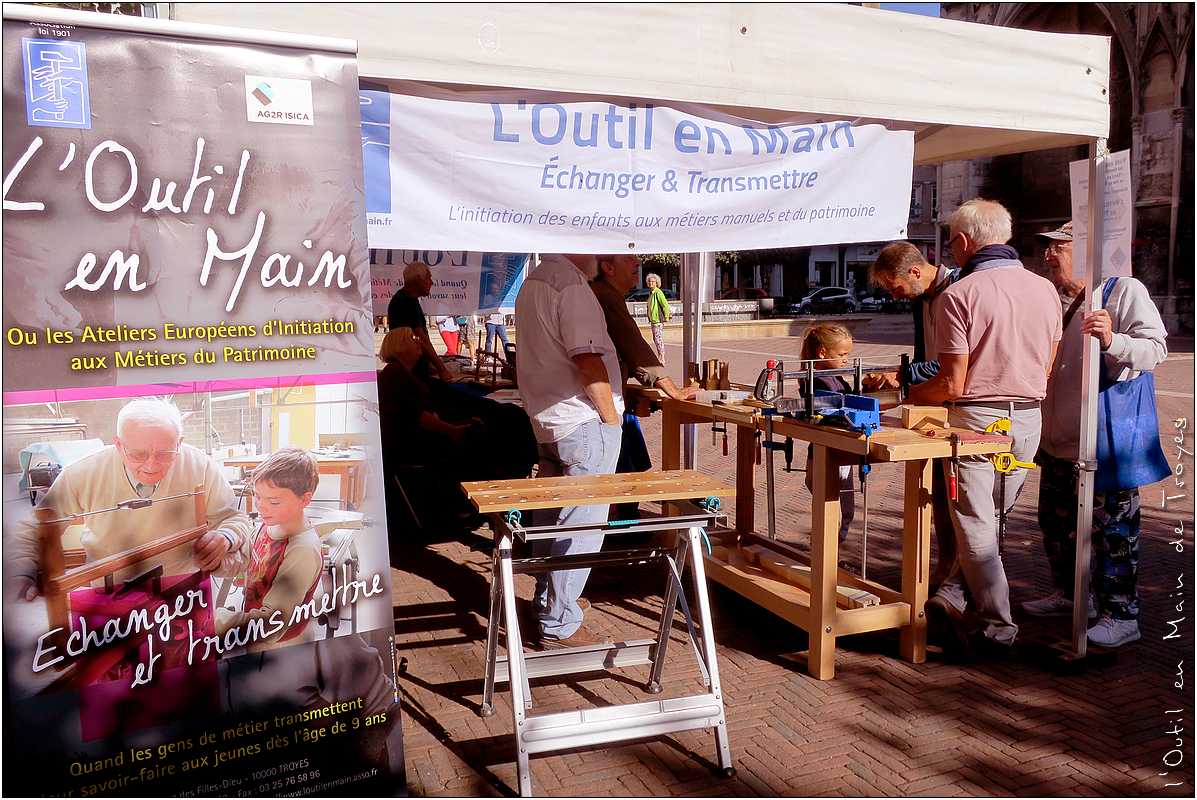 Sur le Parvis de la basilique Saint-Urbain à Troyes, le samedi 21 septembre, les bénévoles de l’Outil en Main de Troyes, qui tout au long de l’année partagent leur passion et leur savoir-faire avec les plus jeunes, présentaient leurs activités avec des ateliers destinés aux enfants. Ceux-ci furent nombreux à s’exercer au vitrail Tiffany, à la reliure, à la menuiserie ou à la sculpture sur bois.