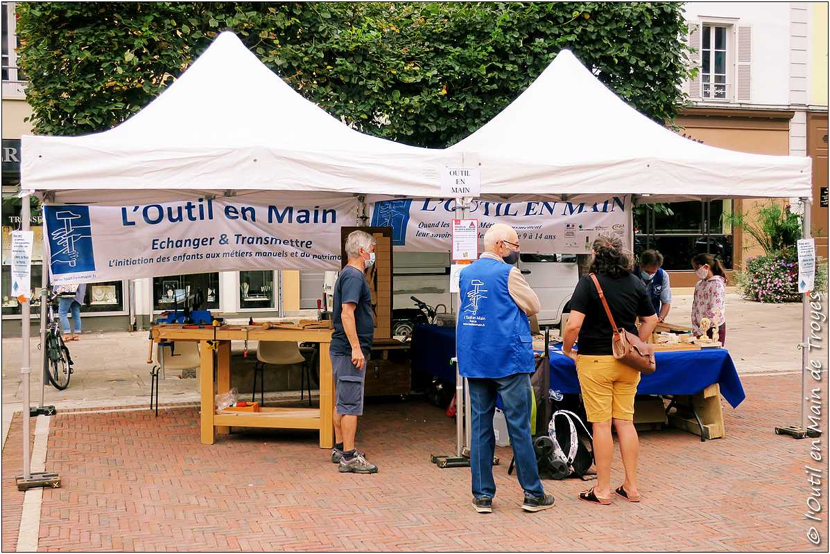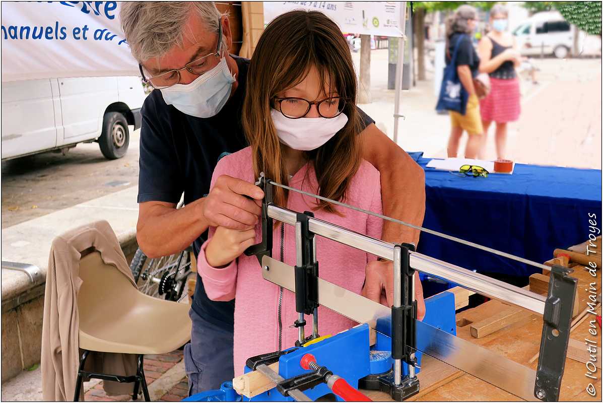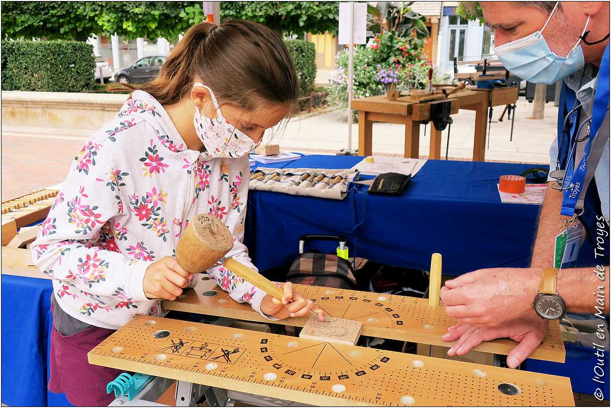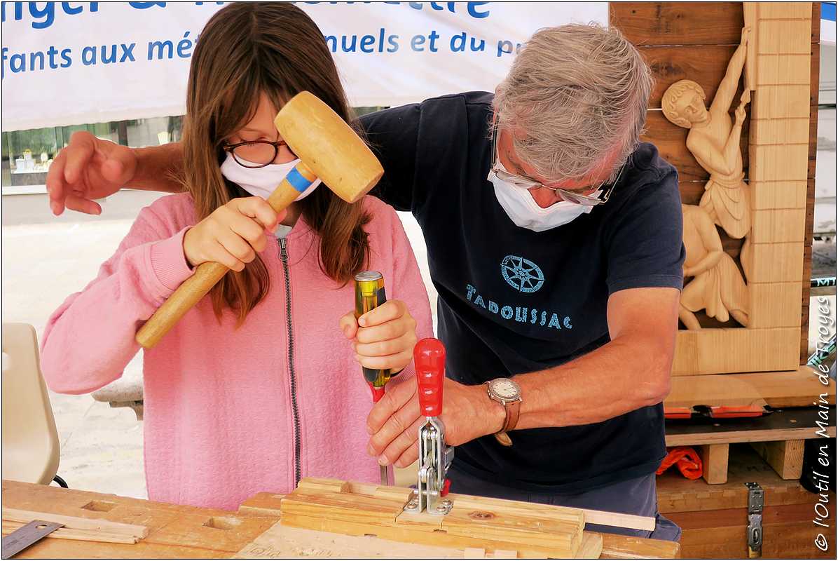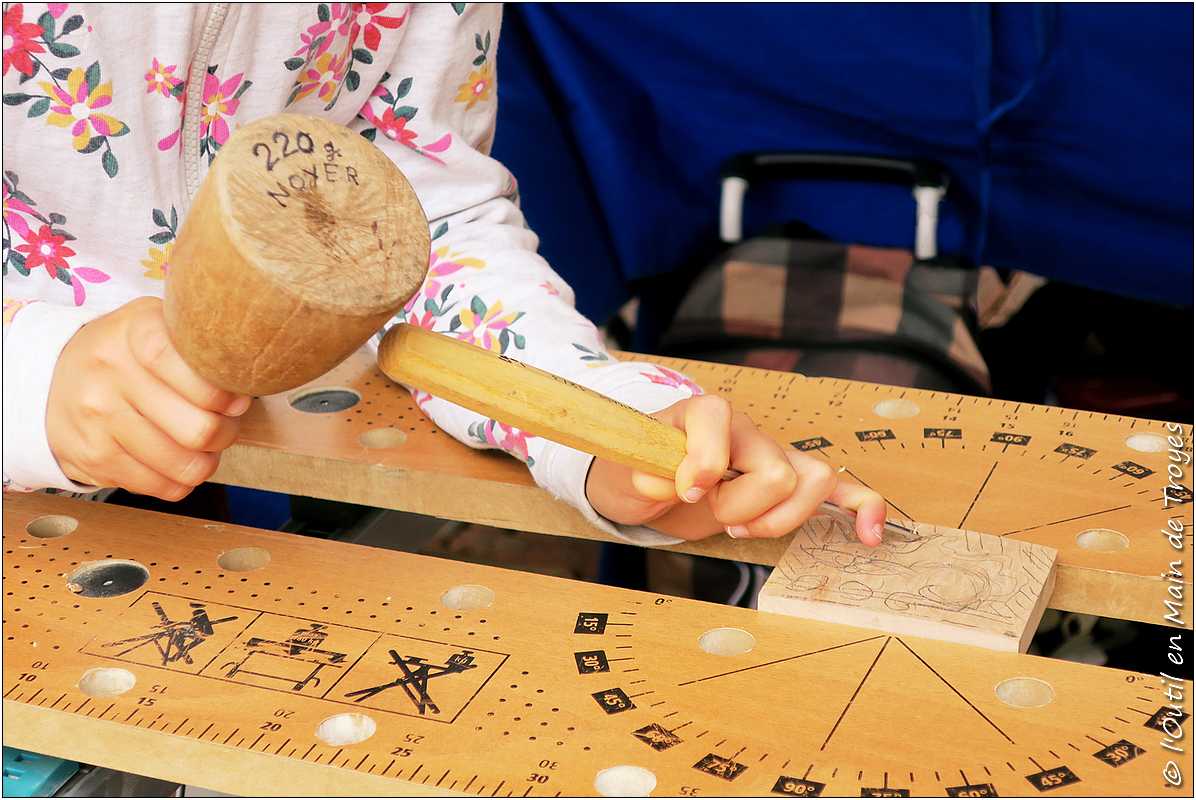 Pour ces journées, sur le parvis de le parvis de la basilique Saint-Urbain à Troyes, les bénévoles de l’Outil en Main de Troyes ont partagé leur passion avec les plus jeunes en les faisant participer à des ateliers de sculpture sur bois et de menuiserie.