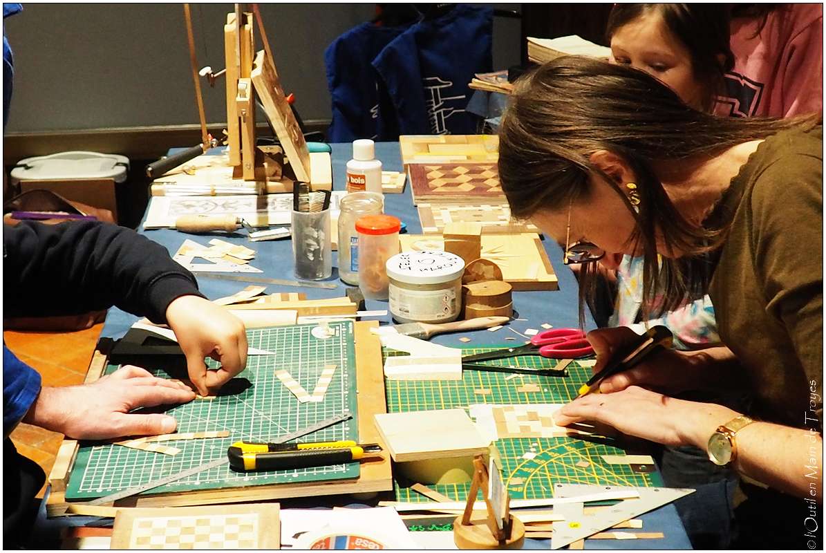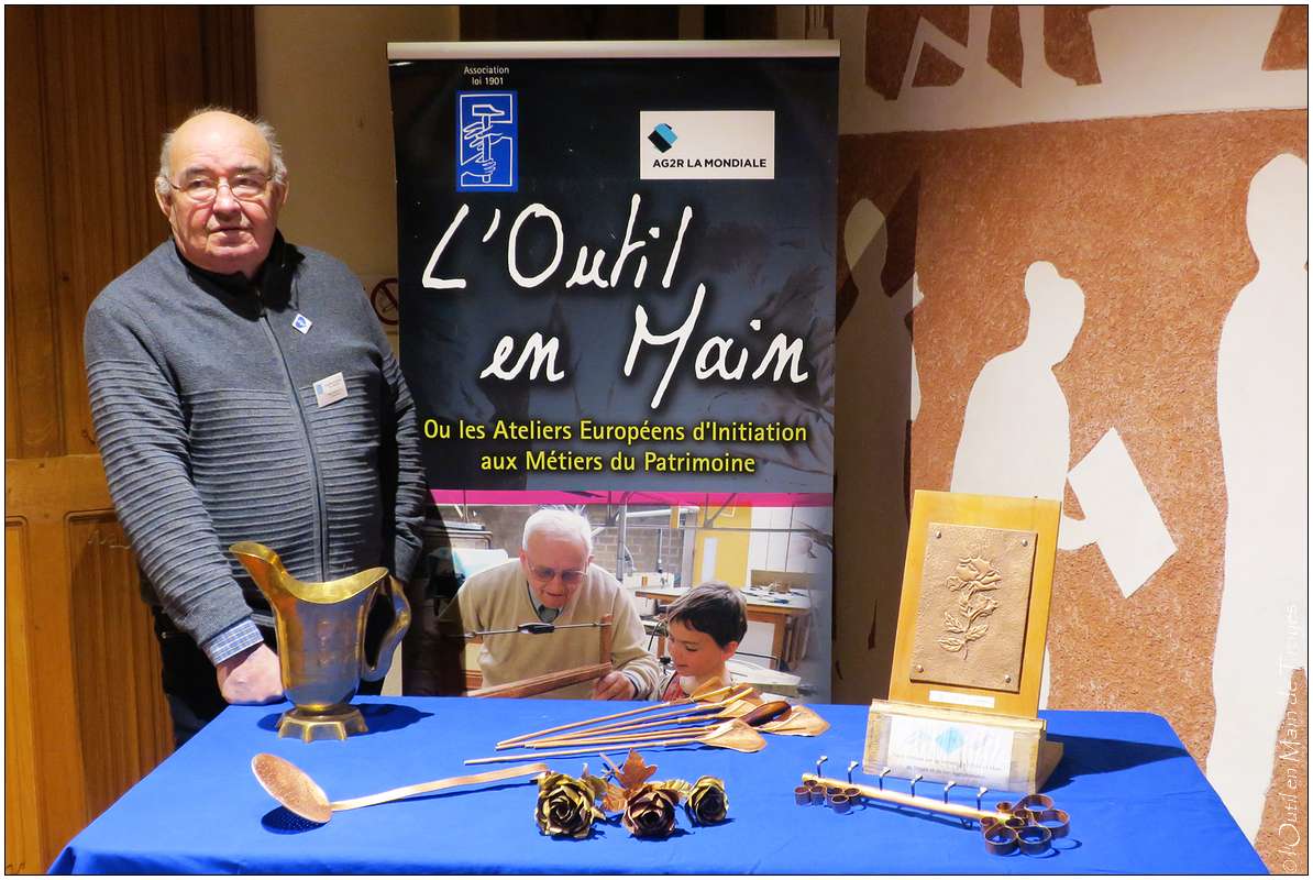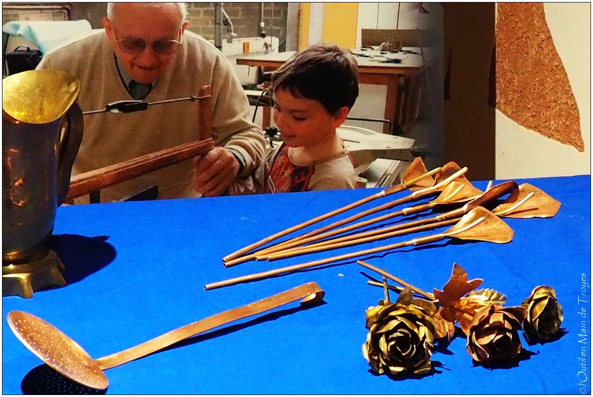 Durant ces deux journées, les animateurs des ateliers de l’Outil en Main de Troyes : dinandier, marqueteur, relieur, tapissier, sculpteur sur bois avaient posé leurs outils dans l’écrin de la Maison de l’Outil et de la Pensée Ouvrière à Troyes pour présenter leur art à un public venu assister à des démonstrations.