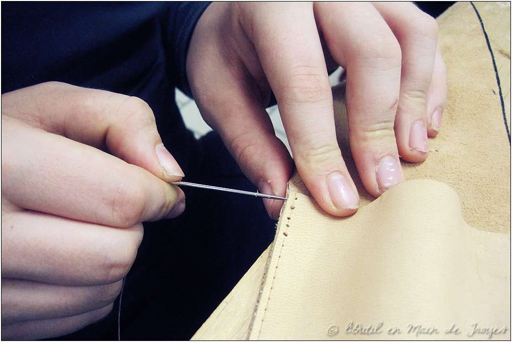 Traçage, découpe du cuir, marquage des points à la roulette et couture n’ont plus de secret pour Antonin, Baptiste et Clément.