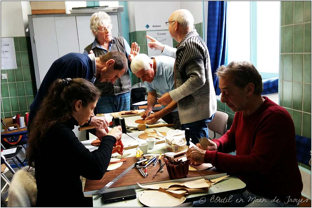 Avant eux, quelques animateurs des ateliers de l’Outil en Main de Troyes, lors d’une séance de découverte, s’étaient également exercés au travail du cuir.