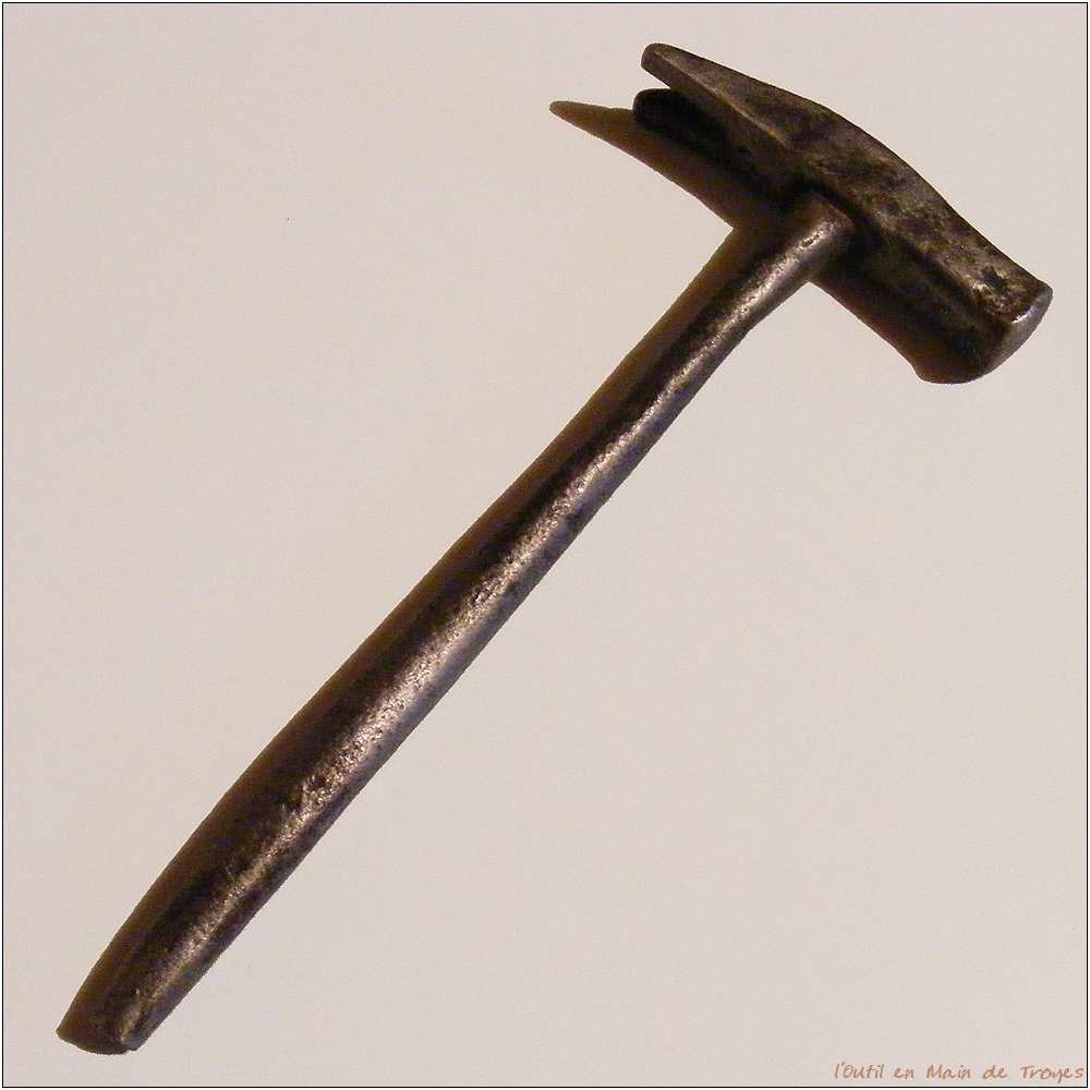 De petite taille, mesurant 150mm de longueur pour un poids de 100 à 120 grammes, tout en acier, manche compris, avec une tête comportant une table carrée [1] d’une part et une panne pied de biche d’autre part.