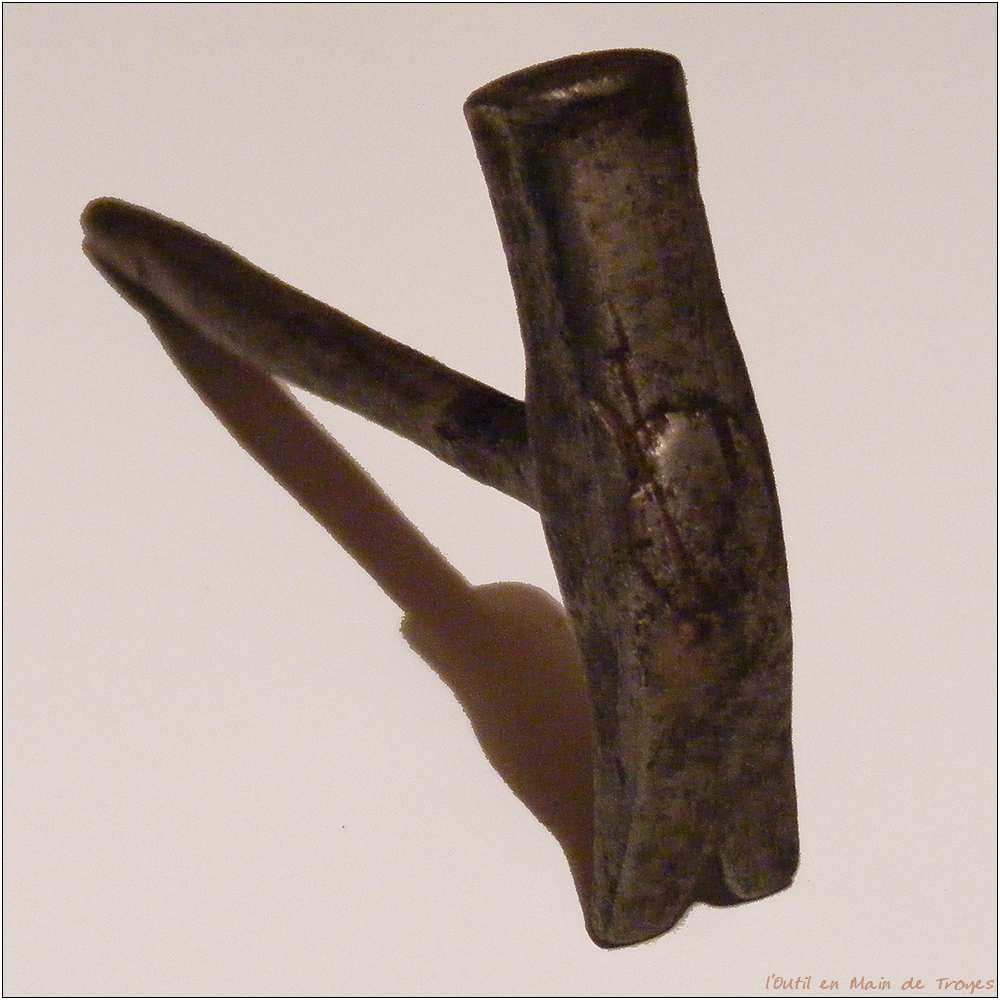 Le roulier en avait toujours en réserve. Pour les remplacer et les faire passer à travers le trou de l’attelle, il se servait du manche en fer du marteau passe billot."