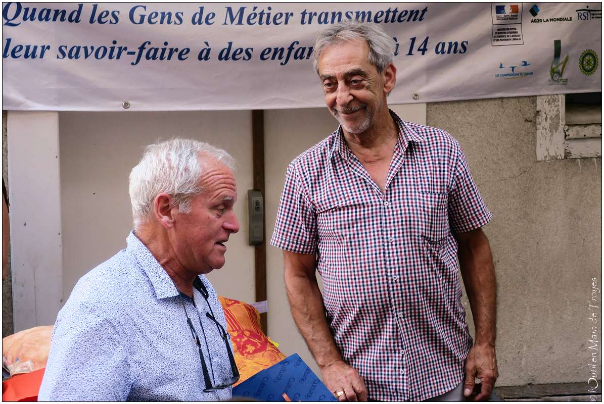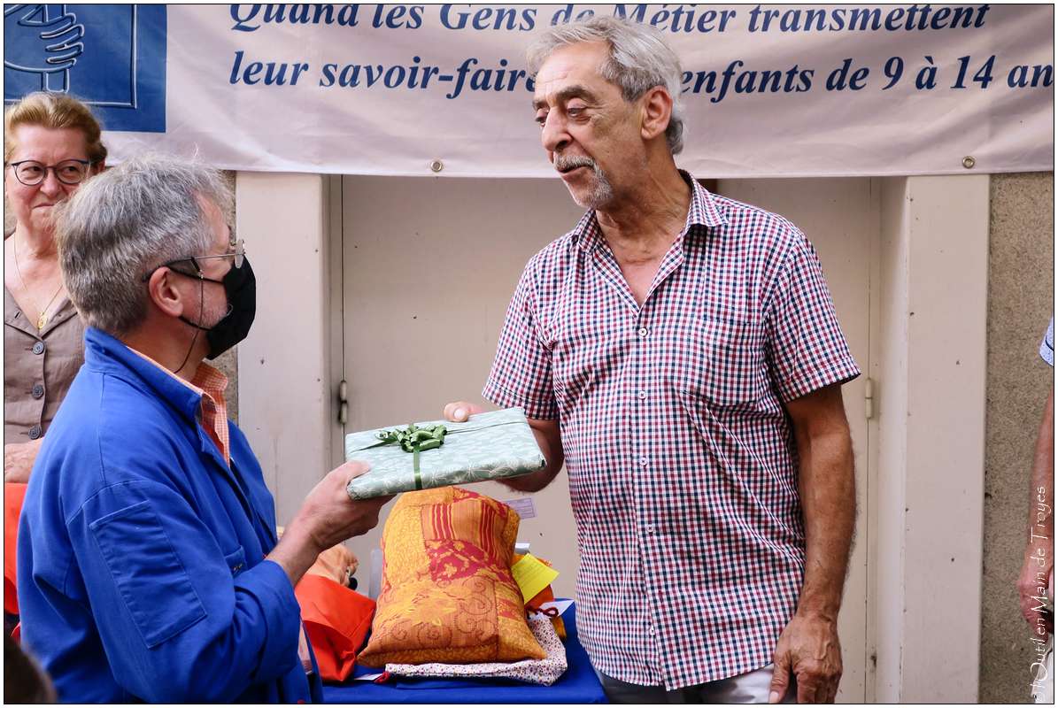 Le Président a, pour finir, remercié deux animateurs d’atelier pour leur action auprès des jeunes et qui vont nous quitter, en leur offrant un cadeau souvenir : Jackie, à l’atelier mécanique-auto et Francis, à la marqueterie.