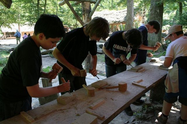 C’était fantastique nous sommes allés faire le tour du site (sculpteur, menuisier, maçon,…) jusqu’à midi. Ensuite nous avons pique-niqué. Après les enfants sont allés chez un artisan pour sculpter la forme que l’on souhaitait sur un pavé de pierre.