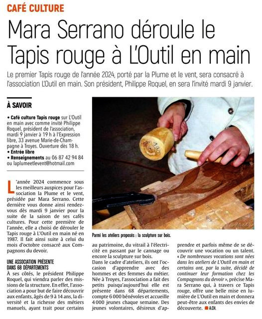 L’Outil en Main est invité par l’association La Plume et le Vent pour son Tapis rouge mensuel, le café culture du 9 janvier 2024.