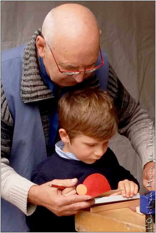 Autre manifestation et public plus familial, samedi 6 et dimanche 7 octobre, la Kermesse Notre-Dame en l’Isle à Troyes où les plus jeunes ont pu s’exercer à la menuiserie et à la reliure pendant que leurs parents s’intéressaient au fonctionnement de notre association et aux différents ateliers que nous proposons.