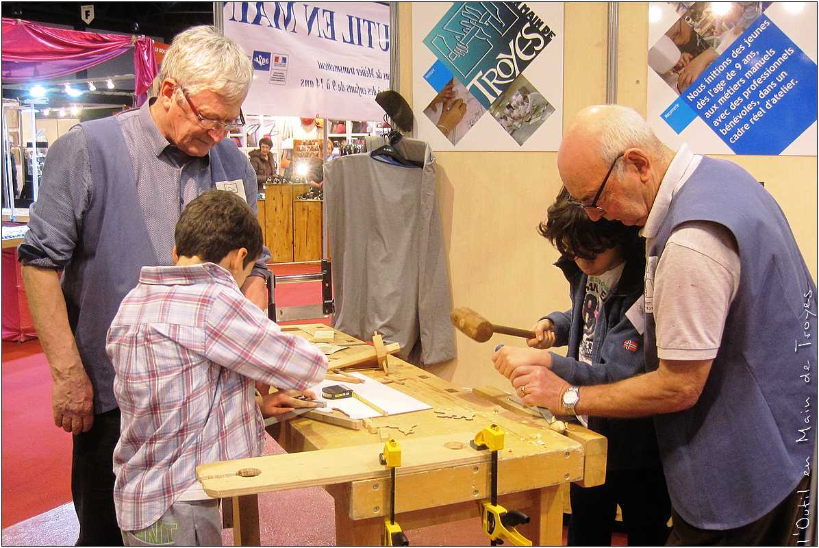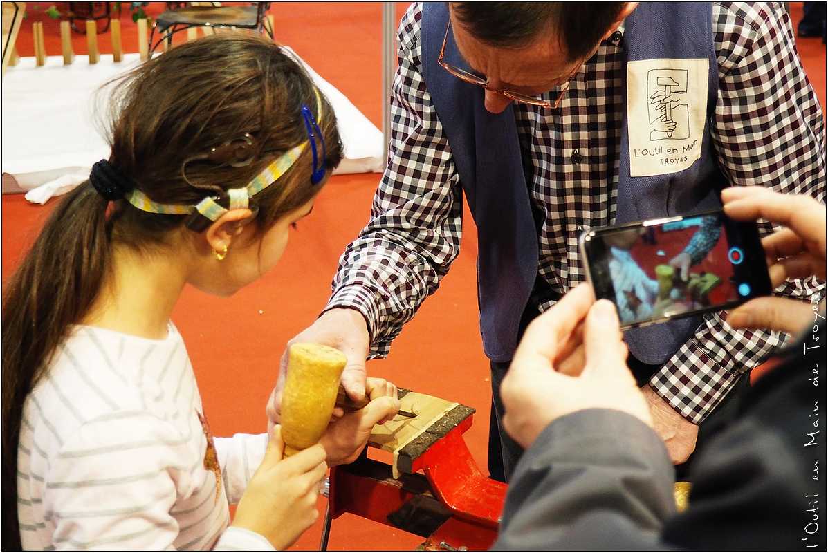 Durant tout le week-end, au milieu de la centaine de créateurs venus de toute la France, les animateurs des ateliers de l’Outil en Main de Troyes ont réalisé des démonstrations de leur savoir-faire en faisant participer les plus jeunes.