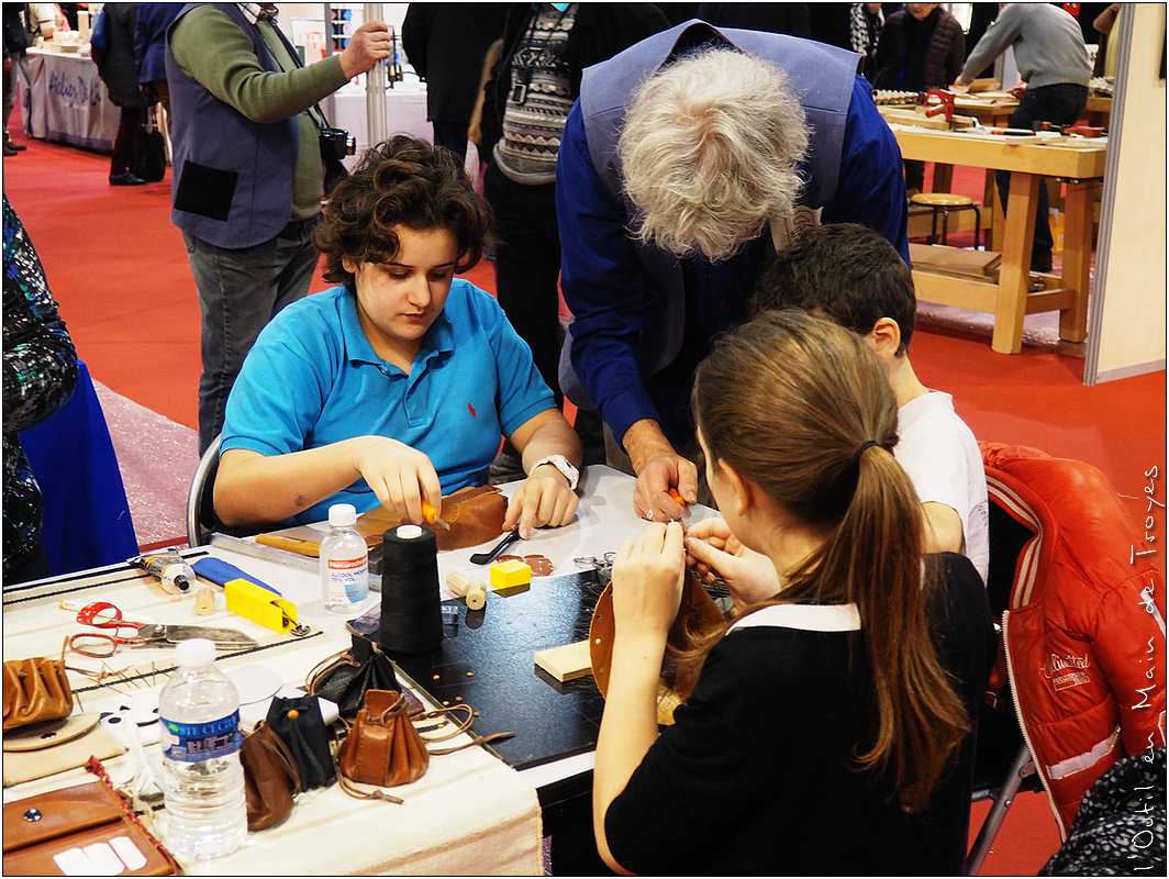 Les enfants visitant le salon ont pu "toucher du doigt" et s’exercer à la couture, à la reliure, au vitrail Tiffany et à la sculpture sur bois, réaliser un moulin ou une toupie à l’atelier menuiserie ou une bourse à l’atelier maroquinerie.