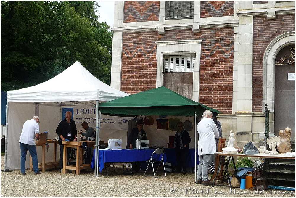 Les quelques gouttes de pluie de la matinée n’ont pas entamé la bonne humeur de l’équipe de l’Outil en Main de Troyes qui a participé ce dimanche 29 juin 2014 à la troisième édition de la Fête du Parc des Moulins à Troyes.