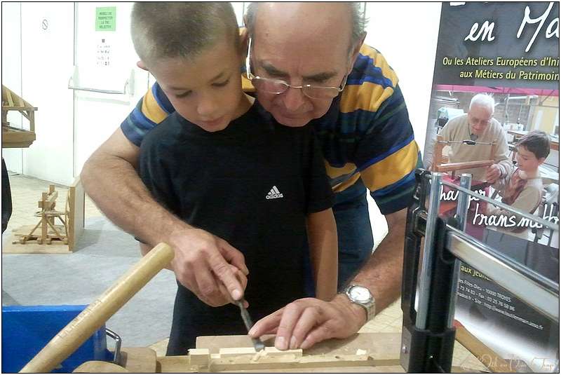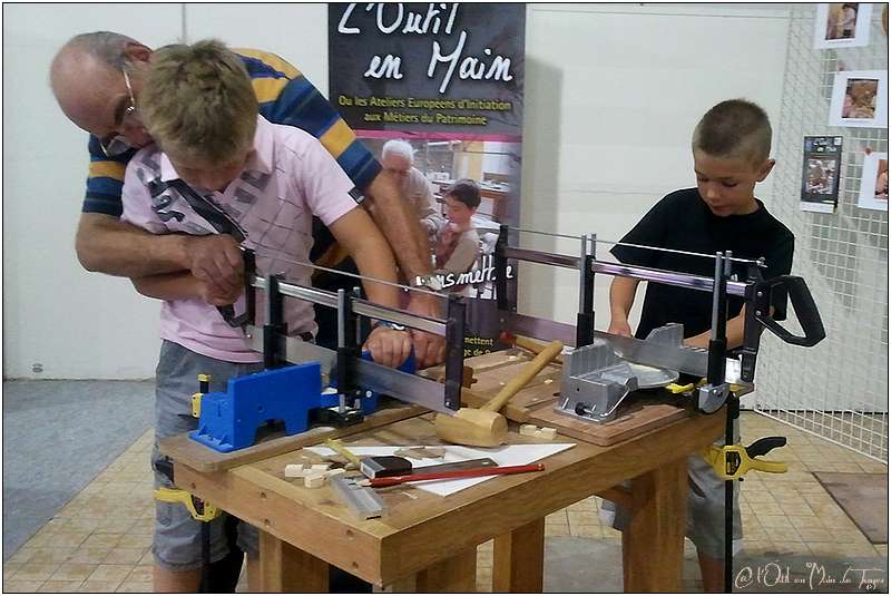 Pendant que les parents découvraient notre association, les plus jeunes pouvaient s’exercer aux activités proposées par les animateurs des ateliers ébénisterie, menuiserie et vitrail de Troyes et de Ste-Maure.