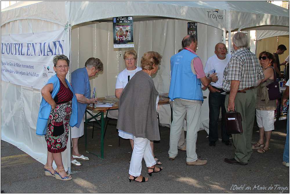 Réussite totale pour cette belle journée : Gisèle, Jean-Paul, Daniel,... les bénévoles de l’Outil en Main ont pu présenter les activités de l’association aux nombreux visiteurs. Claude GAUTHIER, président de l’Outil en Main du Pays d’Armance, au nom de tous ses collègues des associations de l’Aube, est intervenu sur le podium de la manifestation pour exposer les missions et objectifs de l’Outil en Main.