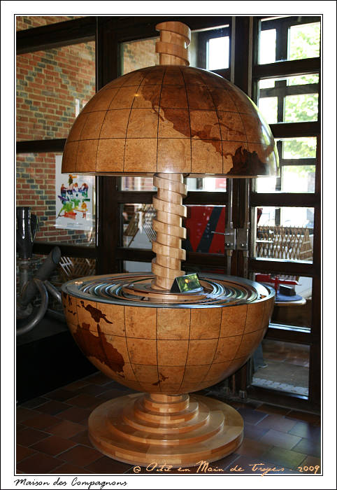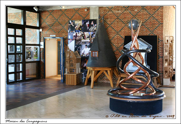 Quand le visiteur entre pour la première fois dans le hall de la Maison des Compagnons, il reste bouche bée. Il se déplace à pas feutré et chuchote : "Je ne savais pas que l’on pouvait faire d’aussi belles choses !". Il parle des quelques chefs-d’œuvre exposés : clocher en ardoises, charpente d’église à colombages, gigantesque table en bois massif, globe terrestre en marqueterie, tous fruits d’une longue éducation de soi-même par le travail.