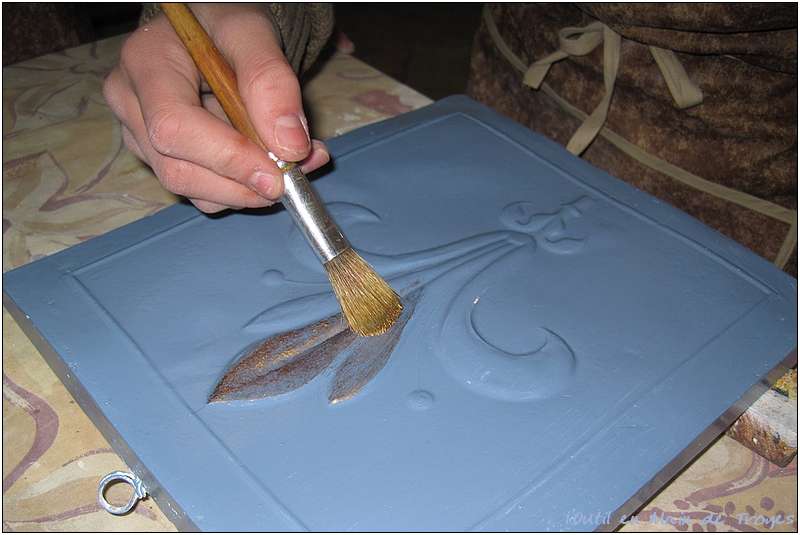 C’est sur des éléments de staff que Daniel fait découvrir également à la fois la préparation des supports et la mise en peinture. C’est ensuite avec fierté que chaque enfant emporte l’objet que Daniel lui a permis de réaliser.