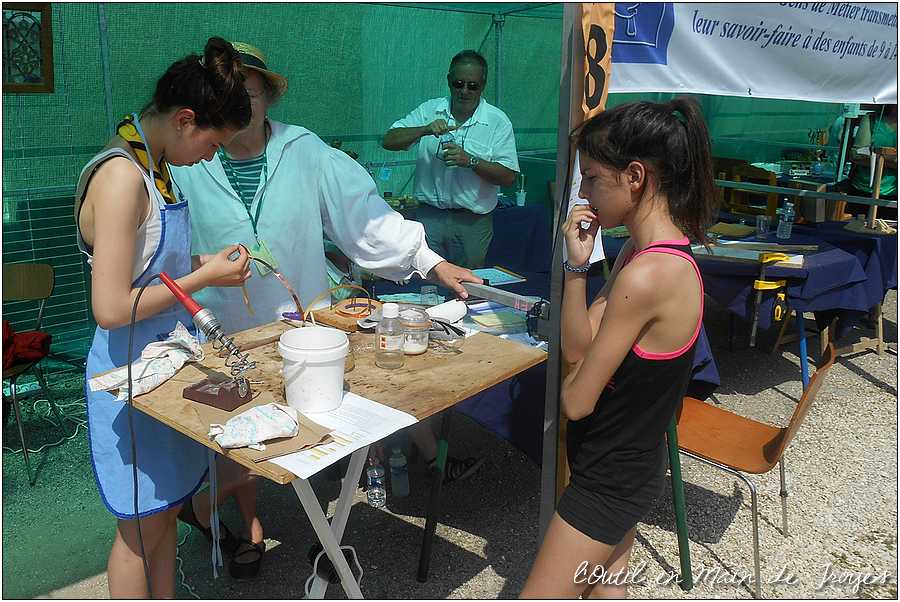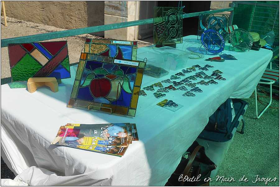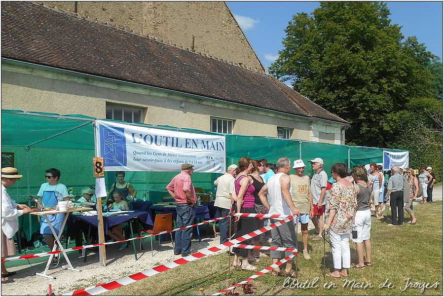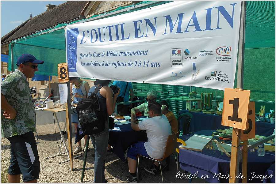 A l’invitation de l’Association Pontigny 2014 , les "Outil en Main" de La-Chapelle-St-Luc, du Pays d’Armance, de Pont-Ste-Marie, de Ste-Maure et de Troyes avaient monté leurs tréteaux au pied de l’église Abbatiale pour le grand jeu des bâtisseurs d’abbaye.