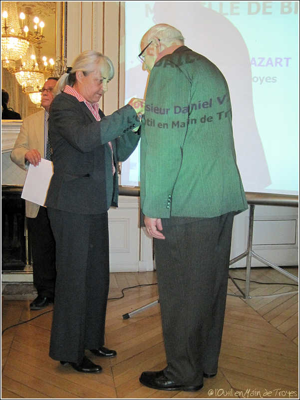 Daniel VAZART, animateur de l’atelier menuiserie depuis 10 ans et secrétaire à l’Outil en Main de Troyes et son agglomération a reçu la médaille de Bronze de la Jeunesse et des Sports [1].
