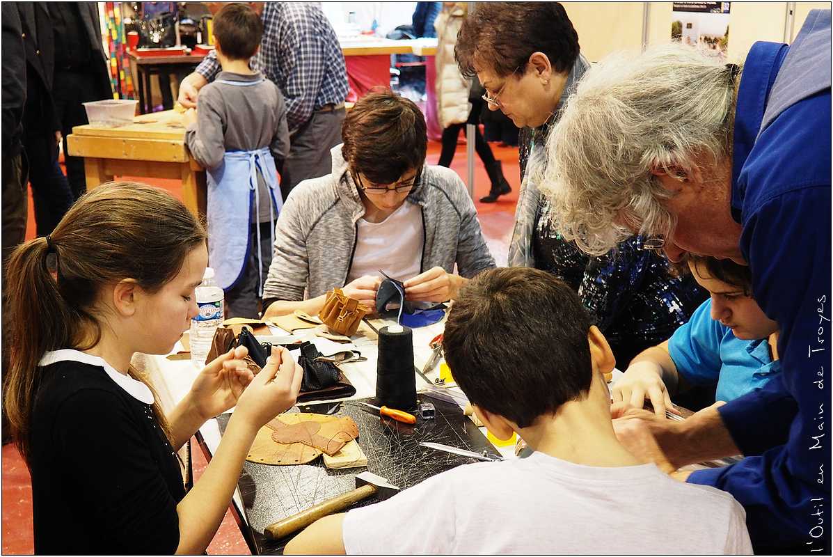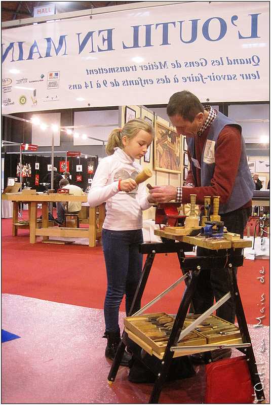 Les enfants visitant le salon ont pu "toucher du doigt" et s’exercer à la couture, à la reliure, au vitrail Tiffany et à la sculpture sur bois, réaliser un moulin ou une toupie à l’atelier menuiserie ou une bourse à l’atelier maroquinerie.