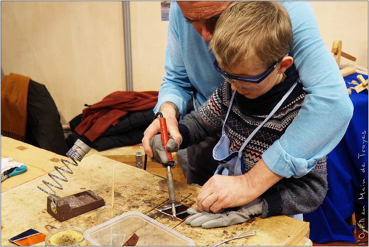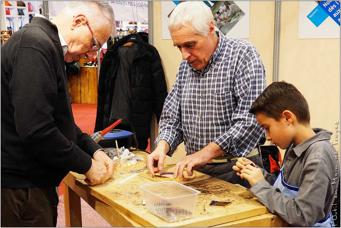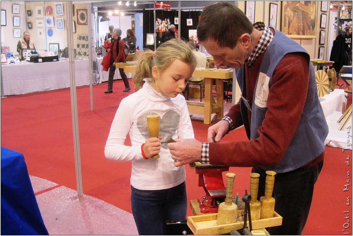 Durant tout le week-end, au milieu de la centaine de créateurs venus de toute la France, les animateurs des ateliers de l’Outil en Main de Troyes ont réalisé des démonstrations de leur savoir-faire en faisant participer les plus jeunes.